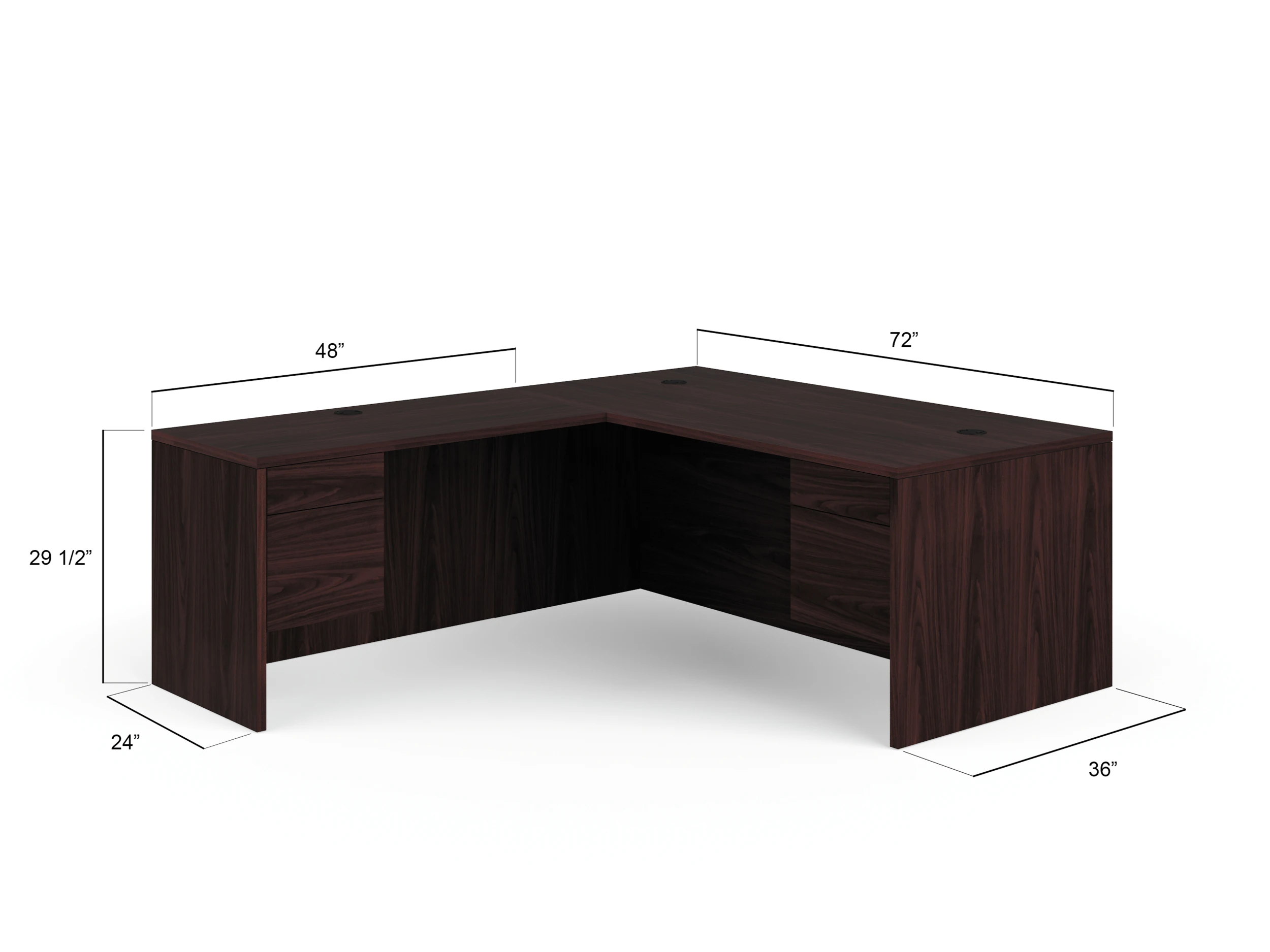 HON 10500 Series L-Workstation | Full Pedestals | 2 Box / 3 File Drawers | 72″W | Mocha Finish
