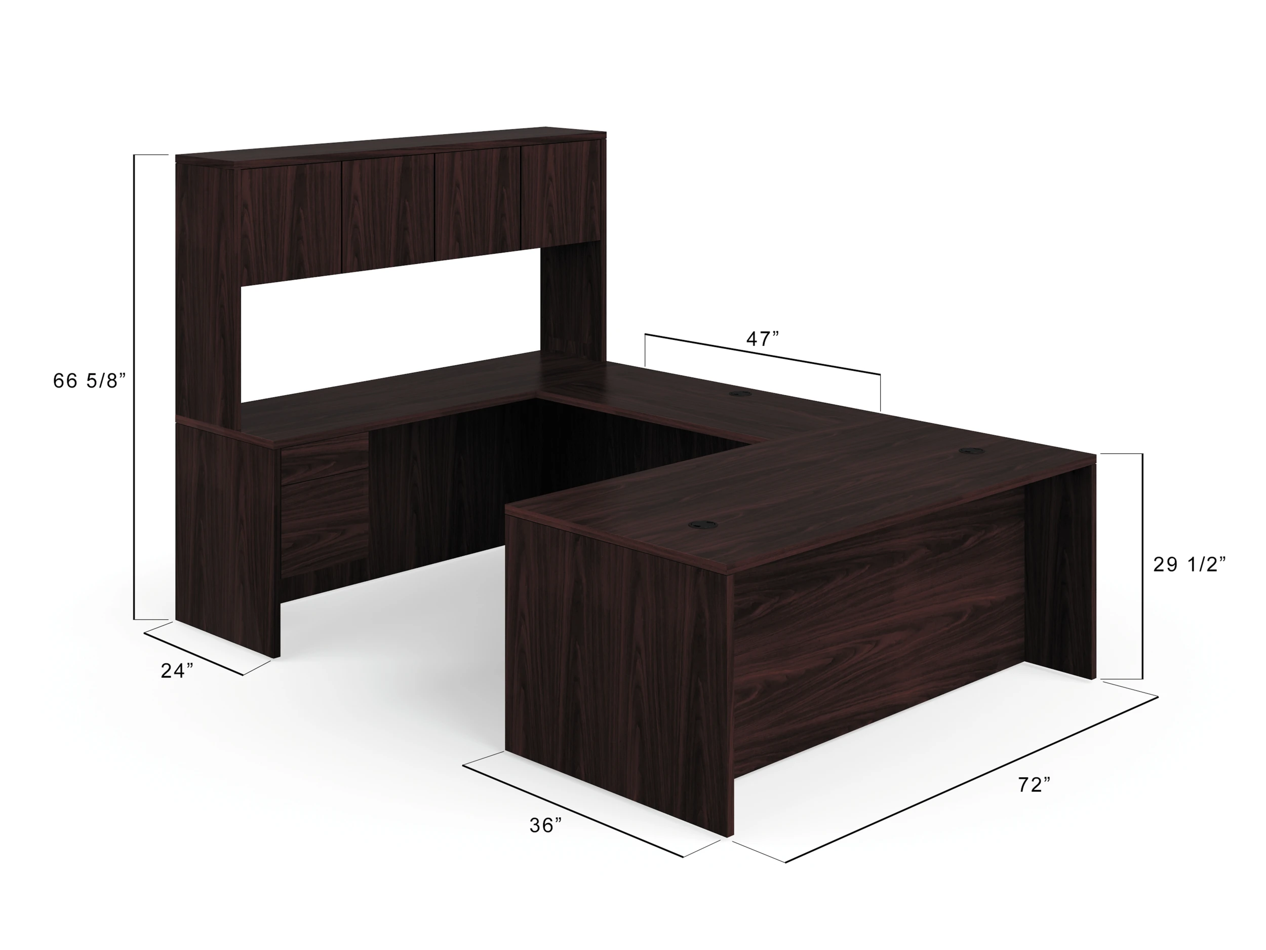 HON 10500 Series U-Workstation | Left Desk, Bridge, Credenza, Hutch | 72″W X 107″D | Mahogany Finish