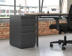 HON Flagship Mobile Pedestal | 1 Box / 1 File Drawer | Arch Pull | 15″W | Charcoal Finish