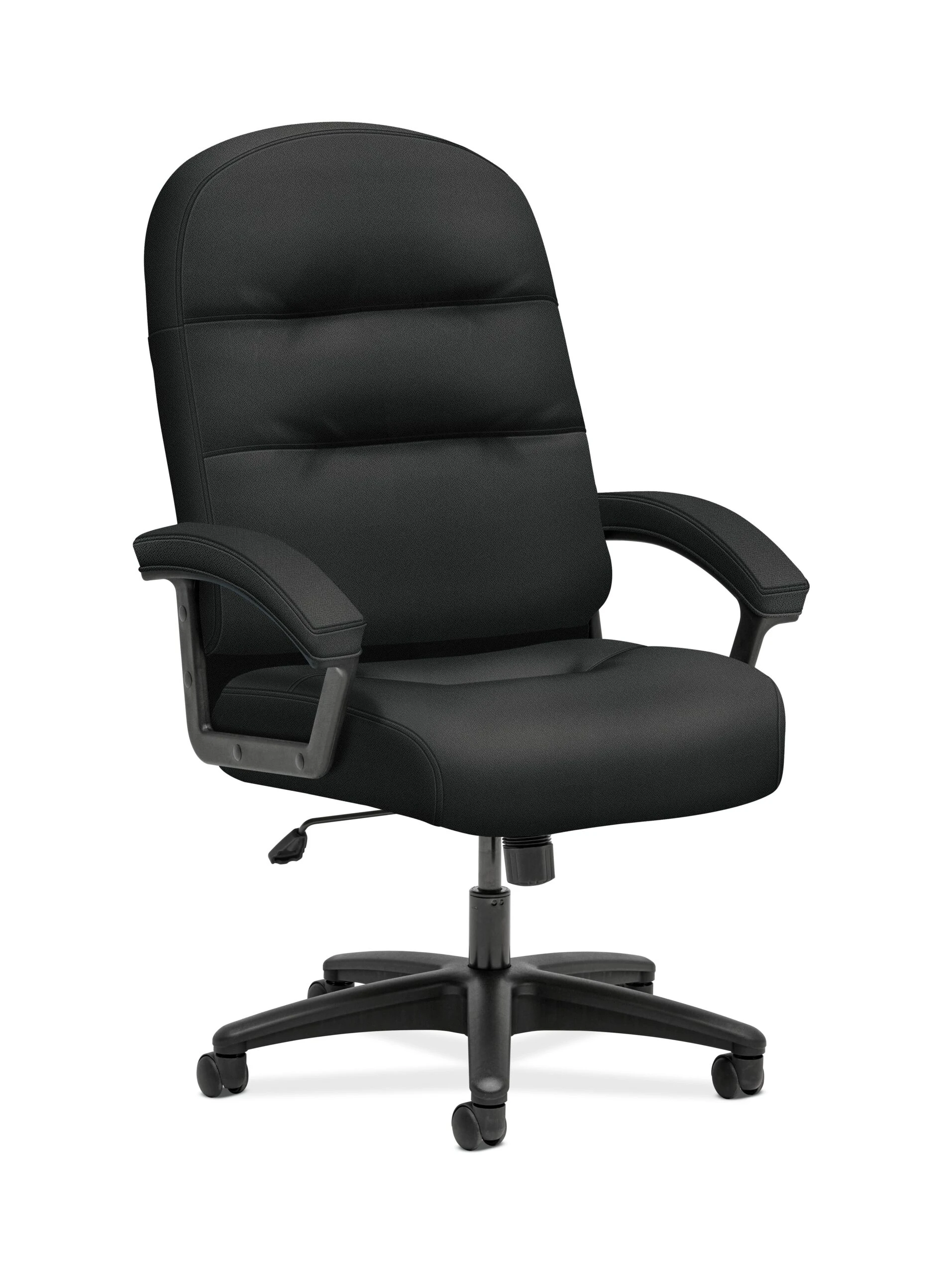 HON Pillow-Soft chairs deliver the ergonomic support you need throughout the day, with the plush cushioning that makes sitting more comfortable than ever. This high-back chair brings contemporary design into any office setting, and delivers customizable comfort to fit any user. The padded seat and arms create a luxurious feel, while the center-tilt recline control uses tilt tension to allow you to achieve the most comfortable reclining posture. Hard casters and 360-degree swivel allows you to move in any direction throughout your work space. This chair features Black fabric on the seat and back.