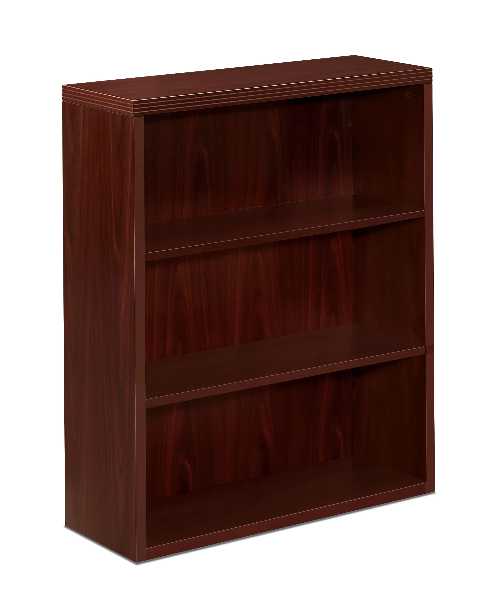Valido laminate desks from HON features an extra thick top with ribbon edgebanding. This three-shelf bookcase is factory-assembled and amazingly strong, ready to handle your books and reference materials. Laminate color is Mahogany.