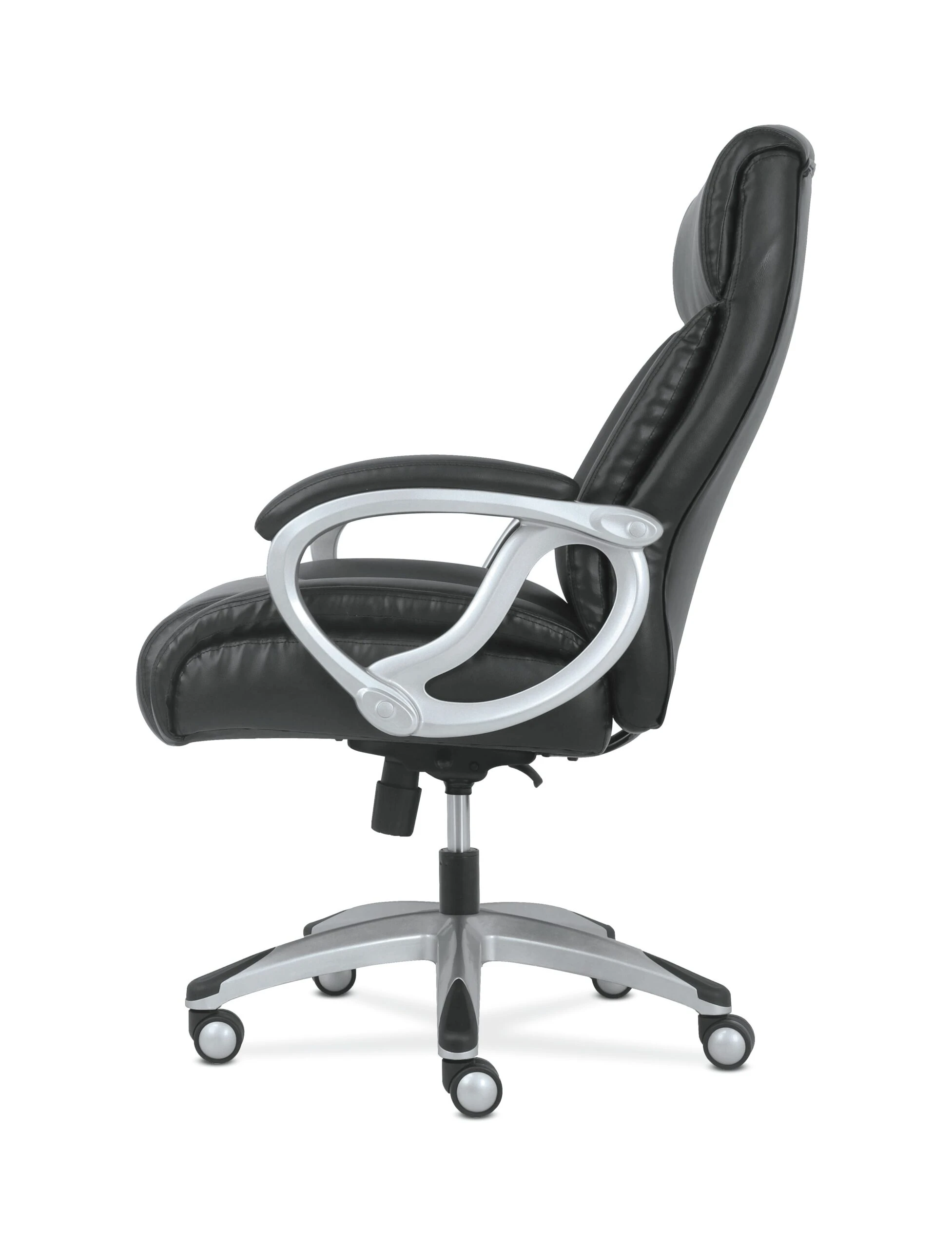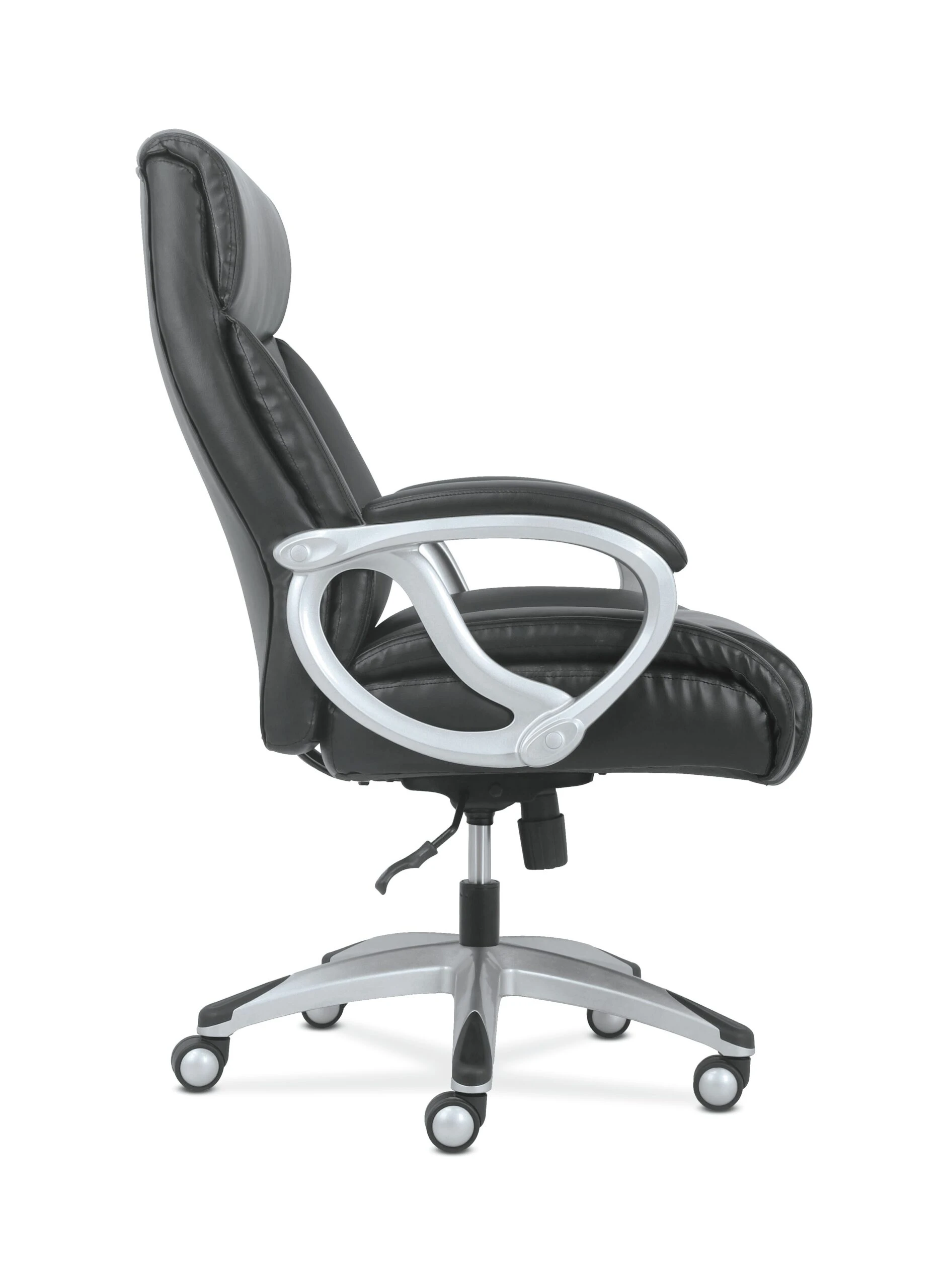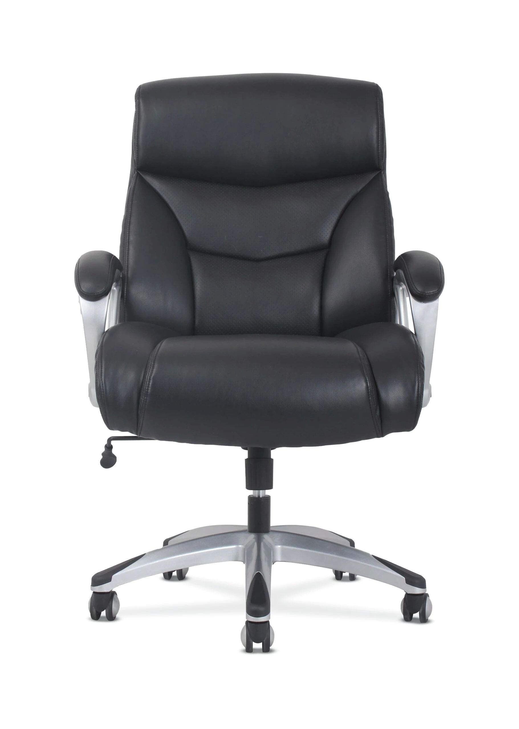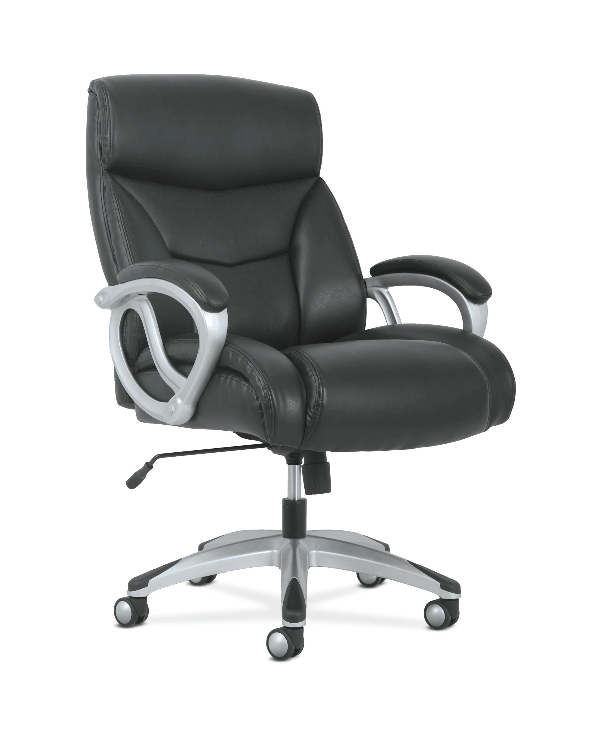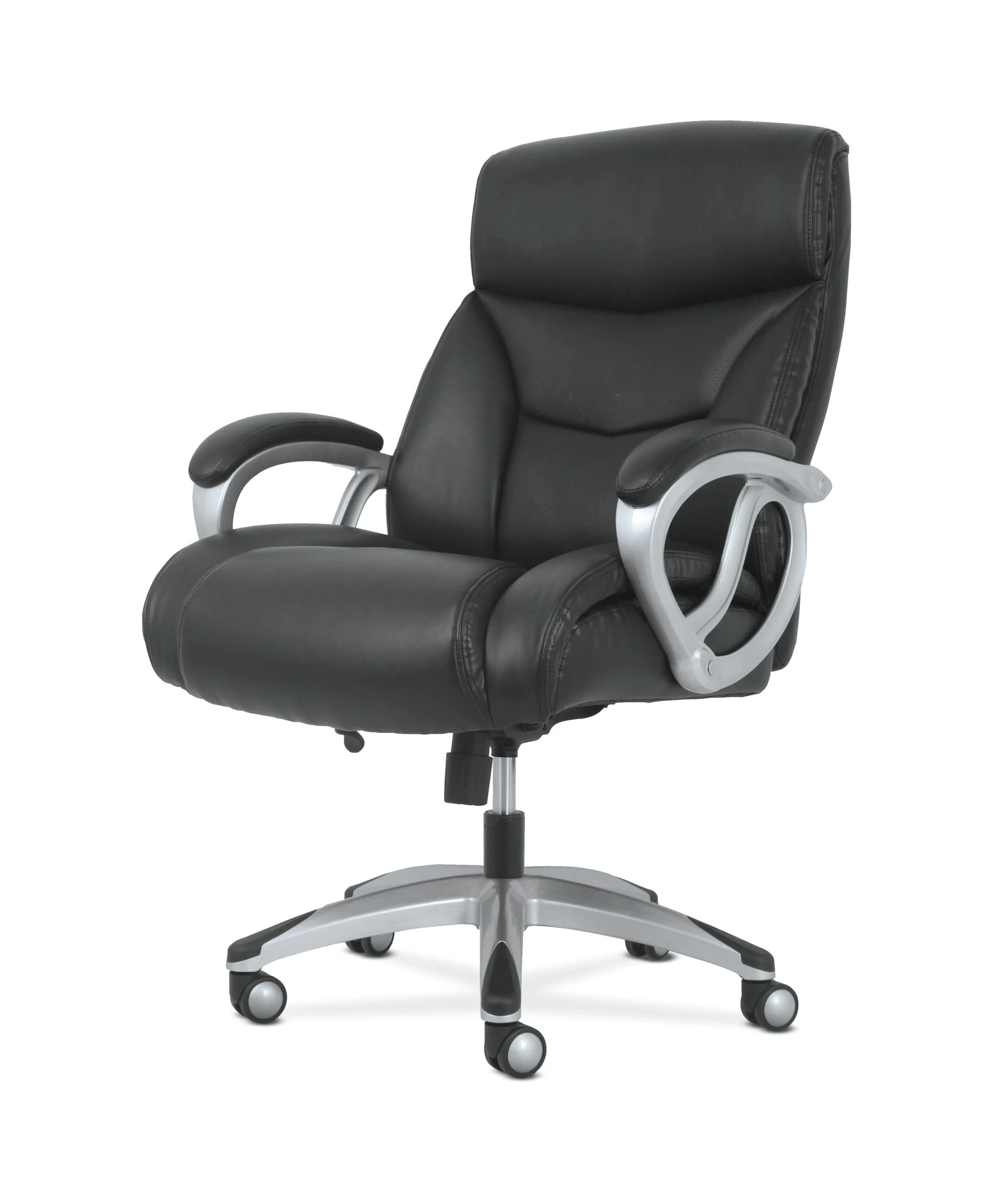 The Sadie seating collection is where quality meets value. Classic black leather and a Silver frame make the Sadie 3-Forty-One big and tall chair perfect for executive spaces. Customize your comfort with an adjustable tilt lock and seat height. Fixed padded arms provide valuable upper body support, and 360-degree swivel enable total freedom of movement.